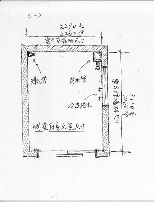 編輯提醒:可以自己畫平面圖,或者請裝潢公司給出。注意要標出門窗位置,還要標出上下水管和煤氣管的位置,暖氣,插座的位置。