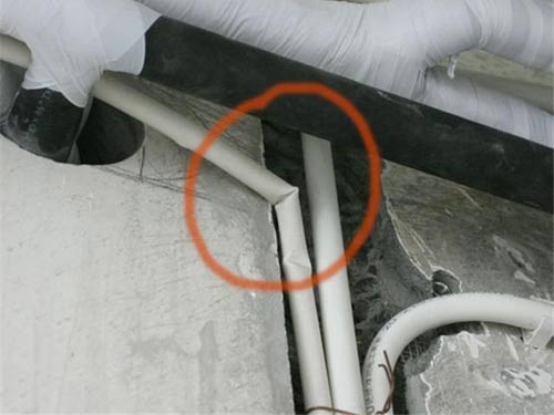 空調(diào)的安裝師傅是我自己找的,管線排得真是一蹋糊涂,下面圓圈內(nèi)是空調(diào)管線,上面是我家工人的工藝,優(yōu)劣自辯??!