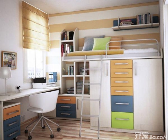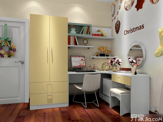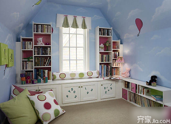 在書房中,不要只是一組大書柜,加一張大寫字臺、一把椅子,而要把孩子的情趣充分融入書房的裝飾中,一件藝術收藏品,幾幅鐘愛的繪畫或照片,幾幅自己親手寫就的墨寶,哪怕是幾個古樸簡單的工藝品,都可以為孩子的書房增添幾分淡雅、幾分清新。