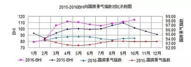 本月BHI走勢與去年同期相比方向相反,除了房地產市場影響(2015年房地產市場呈回落走勢,且全國商品房待售面積增速回升,三四線城市去庫存壓力較大)之外,10月PPI環比漲0.7%,同比上漲1.2%,繼9月PPI轉正之后進入“1”時代,表明當前經濟正走向L型平穩趨勢,這也會刺激存量房產再裝修的發展。